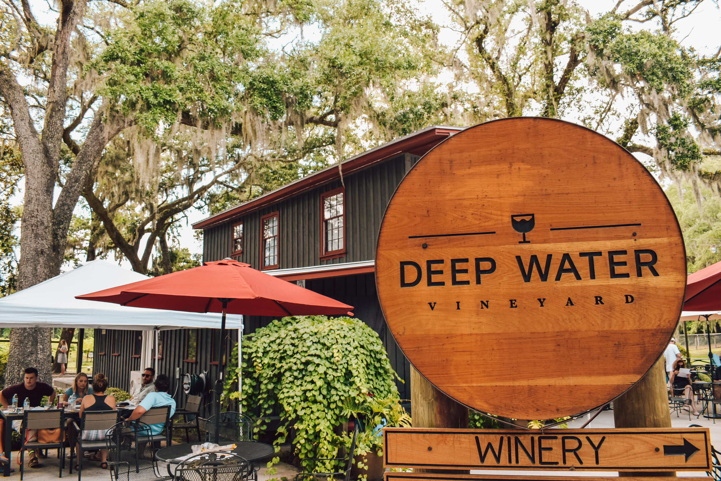 We decided to walk the grounds to get away from Ethel. They said a wine slushie is excellent for the walk. Yeah—more sugar, please. Before heading out, we tried to use their outdoor bathrooms. They weren't great. The grounds, however, were just as majestic as any other winery’s vineyards. They might only have Muscadine, but grapes sure do look astounding in their rows of vines.